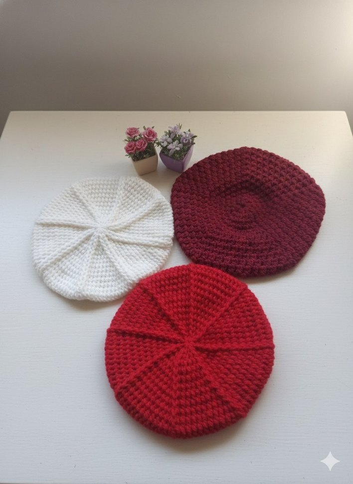 İstenilen renklerde siparis alınır .Renk Renk desen desen harika ressam bereleri Bordo, kırmızı ve beyaz renklerde örgü kadın bereler, rahat ve bohem tarzda. Yumuşak örgü kumaştan günlük kullanım için uygundur.