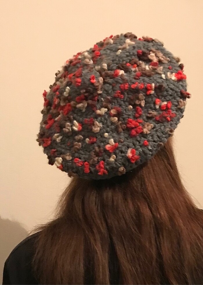 El örgüsü yün ipten yapıldı . Gri bordo beyaz .