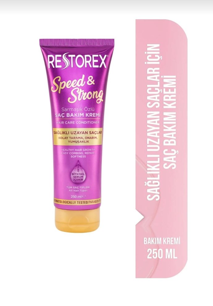 Restorex Speed & Strong sarmaşık özlü saç bakım kremi, sağlıklı uzayan saçlar için onarım ve yumuşaklık sağlar. Tüm saç tiplerine uygun, 250 ml. Farklı çeşitleri için sayfama bakabilirsiniz.