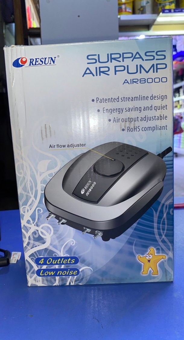 RESUN Surpass AIR8000 hava pompası, patentli akış tasarımı, 4 çıkışlı, ayarlanabilir hava akışı ve düşük gürültü seviyesine sahiptir. Enerji tasarruflu ve RoHS uyumludur. ️ Sıfır kutulu ürün