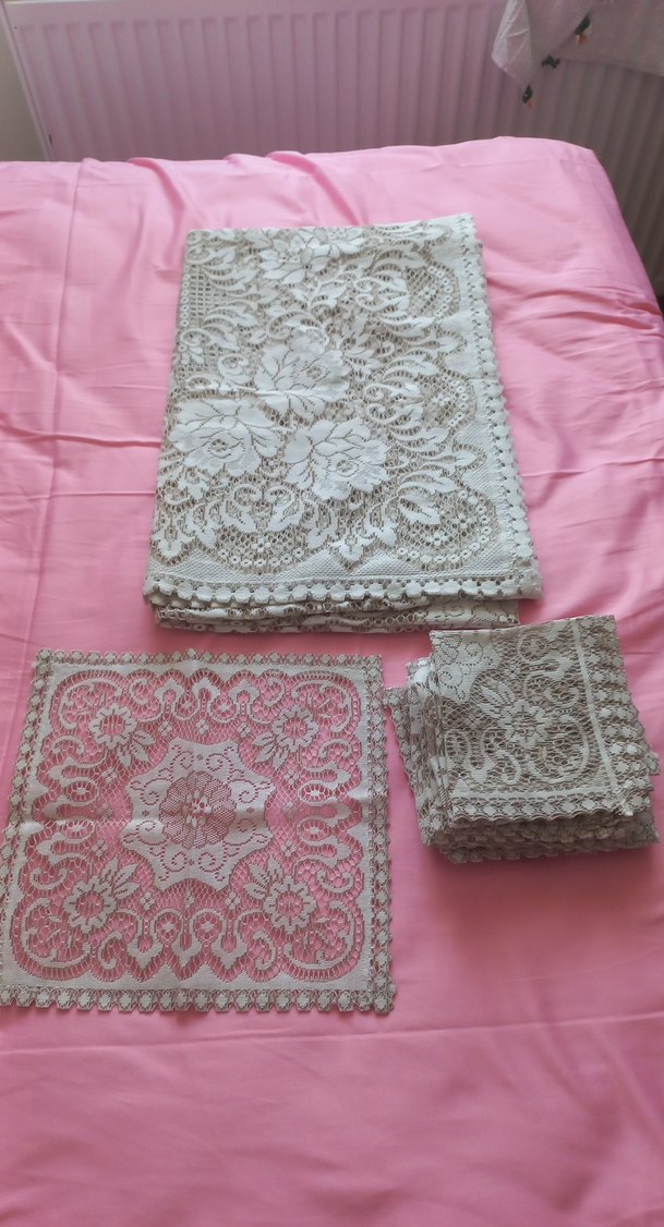 Retro Bej Dantel Masa örtüsü Seti. 220-150cm ölçülerinde