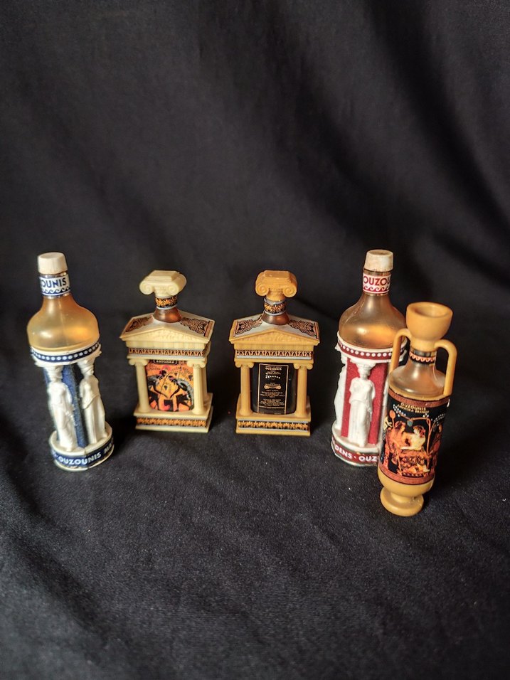 RETRO CLASSIC GREEK ELEGANCE OUZOUNIS OUZO HEPSİNİN FİYATIDIR şişeler Antik Yunan temalı kadın parfüm şişeleri seti. Her biri detaylı heykel ve klasik motiflerle süslenmiş, farklı şekillerde tasarlanmıştır.