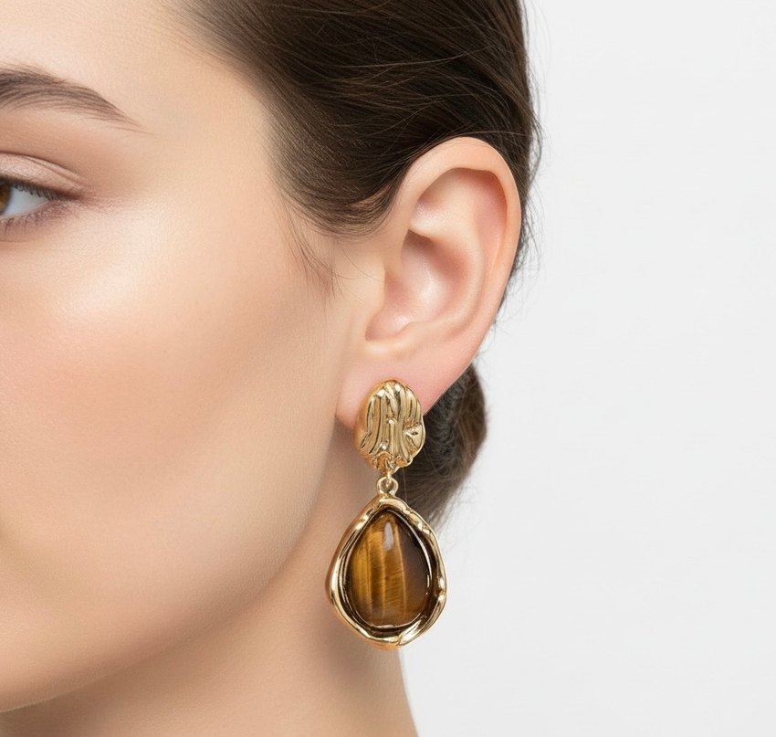 Retro Kahverengi Damla Küpe