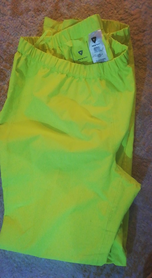Parlak sarı renkte, esnek bel bantlı, L beden yağmurluk pantolon. Lekeli ancak sağlam, yırtık vs yok.
