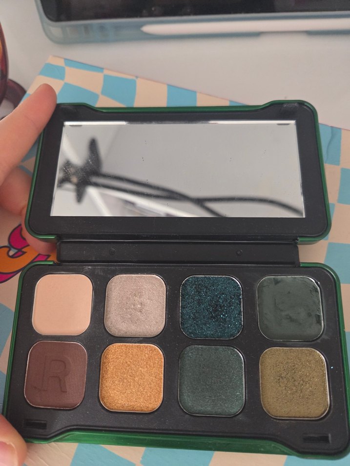 revolution far paleti artık satılmıyor kahverengi ve yeşili açarken tırnağım girdi yeşili düzeltiyim derken böyle oldu ↕️ ama çok az kullanıldı