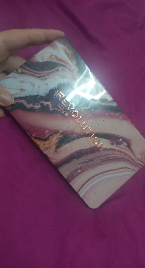 Revolution markalı, pembe parlak göz farı paleti, mermer desenli kutusu ile dikkat çekiyor.