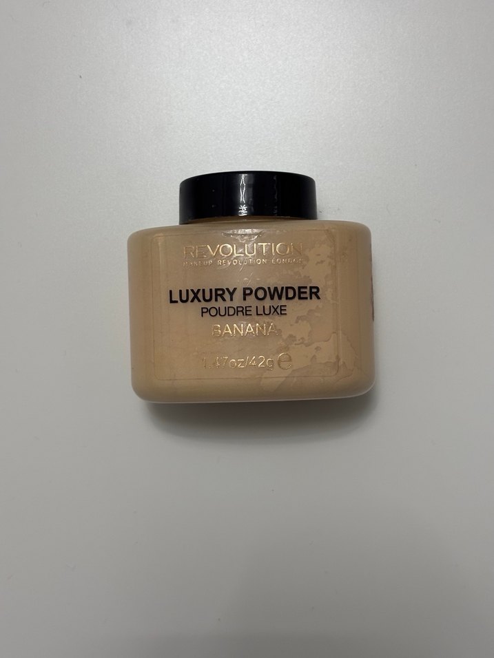 Revolution Luxury Powder, açık bej tonunda Banana rengi, pürüzsüz bir bitiş sunar. 42 gramlık kutuda.