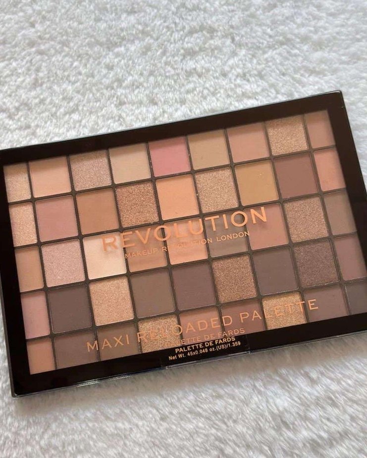 Revolution Maxi göz farı paleti, mat ve ışıltılı bitişe sahip açık bej tonlarında çeşitli renkler sunar.