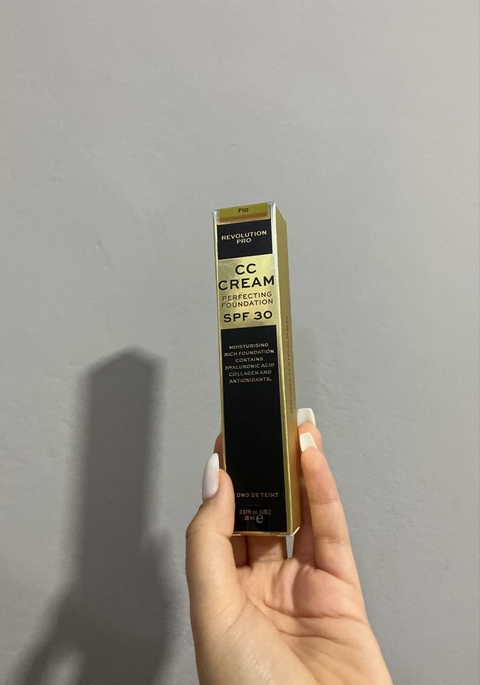 Parlak altın ambalajda Revolution Pro CC krem SPF 30 koruma, nemlendirme, kolajen ve antioksidan icerir hediye olarak geldi bana koyu olucagini dusundugum icin satiyorum acmadim bile