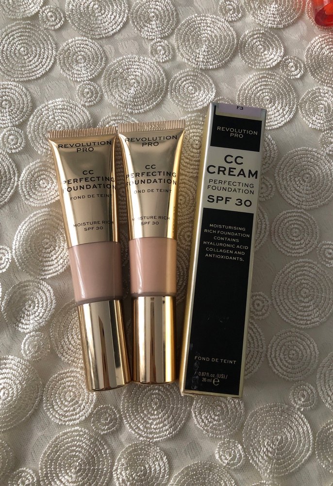 Revolution Pro CC Perfecting foundation F3 rengi kaldı tek. SPF 30 koruması sağlar ve cildi nemlendirir. Hyaluronik asit, kolajen ve antioksidanlar içerir. Çok çok az miktarda kullanılarak renklerine bakıldı sadece. Çok açık cilde sahip olanlar için uygundur. Fiyat sadece F3 içindir. Başka ilanlarla sepette birleştirmeyin lütfen‼️ Toplu alışverişler için iletişime geçiniz