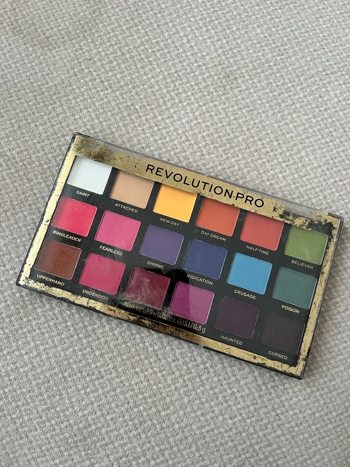 Revolution Pro tarafından çok renkli, koyu tonlarda canlı pigmentlere sahip göz farı paleti. Kapağında deformeler mevcut ama hiç kullanılmadı.
