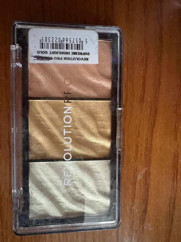 Revolution Pro parlak bej tonlarında üçlü aydınlatıcı palet, makyajınıza ışıl ışıl bir parlaklık katmak için ideal. ✨