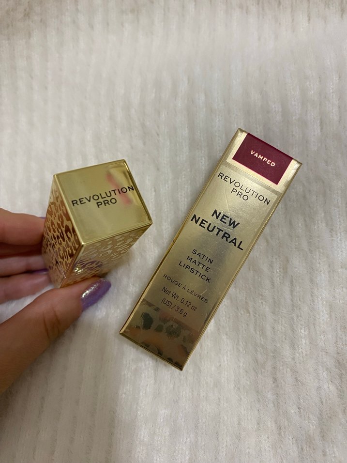 Parlak altın kutuda Revolution Pro Satin Mat Ruj. Vamped tonunda, pürüzsüz saten gibi bir görünüm sağlar. Revolution Pro markasından kırmızı ruj arayışımda olduğum dönem aldım 2 kere kullandım onun dışında hiç kullanmadım, ambalajı konusunda inanılmaz şık bir ruj kendinden mıknatıslı kapağı var ve çok lüks duruyor, elim gitmediği için satıyorum, kutulu ürün.