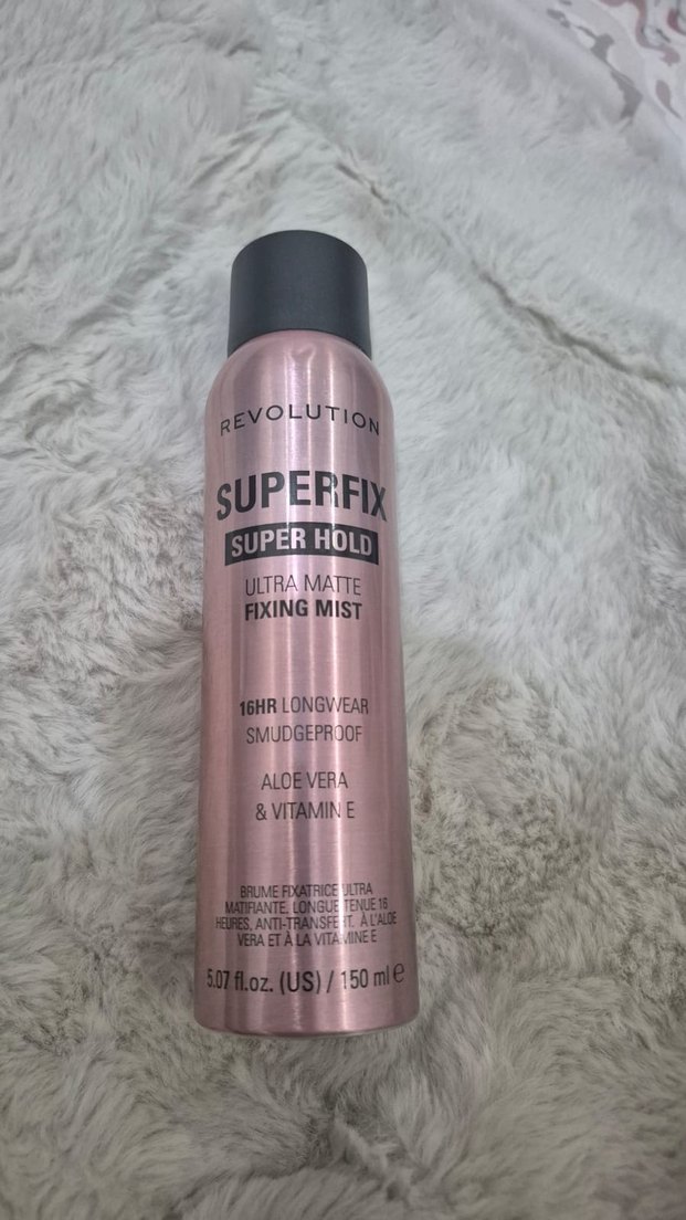 Revolution Superfix Ultra Mat Sabitleyici Sprey, parlak bej renkte, 16 saat süren güçlü tutuş sağlar. Aloe vera ve vitamin E içerir. Ambalajı açılmamış. Sıfır ürün.