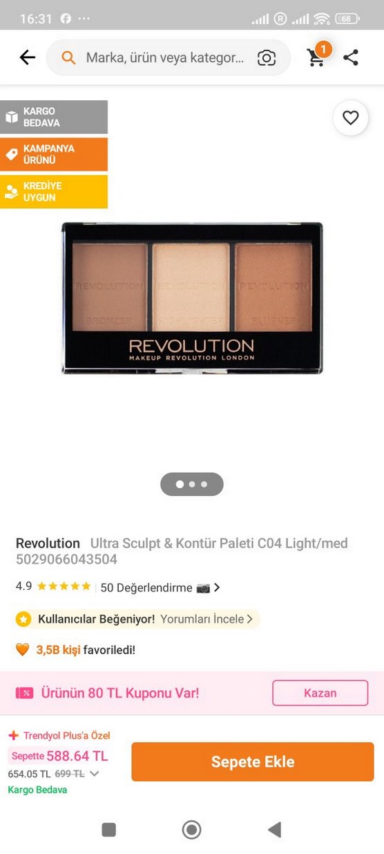 Revolution Ultra Sculpt & Kontür Paleti C04 Light/Med, üç bej ton içerir ve pürüzsüz bir bitişle şekillendirme sağlar. Yeni, kapalı