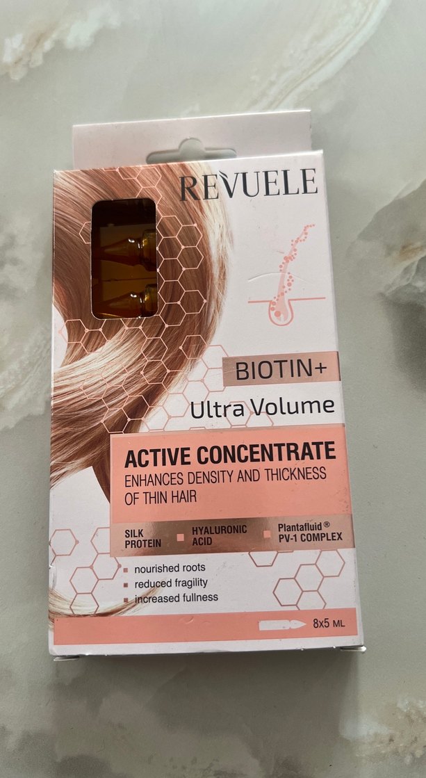 Revuele Biotin+ Ultra Volume aktif konsantre, ince saçlarda yoğunluk ve kalınlık artırır. Saç köklerini besler, kırılmayı azaltır ve dolgunluğu artırır. 8x5 ml ampul içerir. ♀️