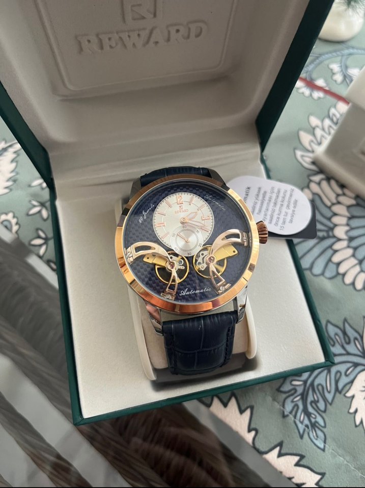 Orijinal, 2 yıl garantilidir. Çok klas, çok gösterişli bir saat.