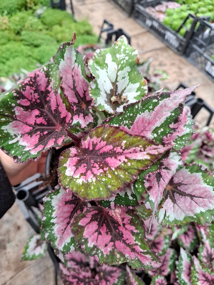 Bu Begonya bitkisi, beyaz lekeli pembe ve yeşil yapraklarıyla ev dekorunuza renkli bir dokunuş katıyor.