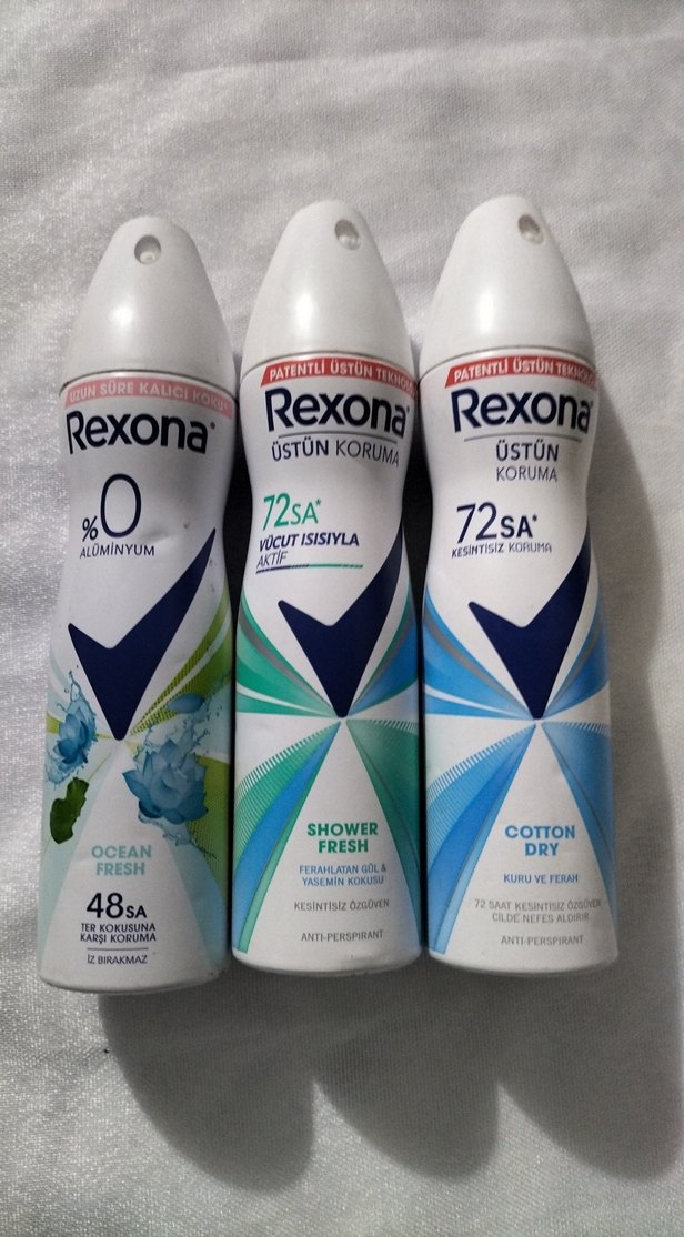 Rexona kadın deodorantlar, Ocean, Shower Fresh ve Cotton gibi ferah kokularla 48-72 saat koruma sağlar. Alüminyumsuz seçenekler mevcuttur.