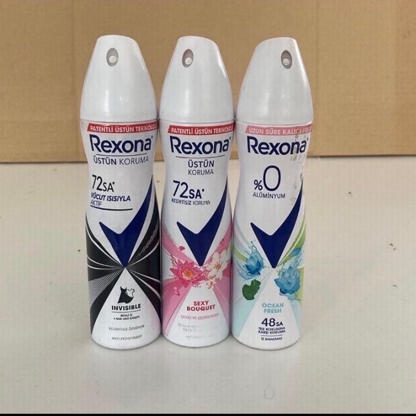 Rexona kadın deodorant seti, uzun süre koruma sağlar, %0 alüminyum içerir ve Invisible, Sexy Bouquet ile Ocean Fresh kokularına sahiptir.