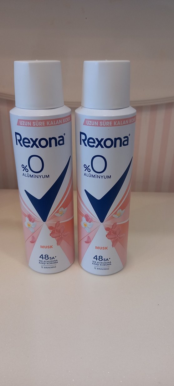 Rexona Musk kadın deodorant, %0 alüminyum içerir ve 48 saat koruma sağlar. Uzun süre kalıcı koku ve leke bırakmaz.Yeni ve etiketlidir. 2'li fiyattir.