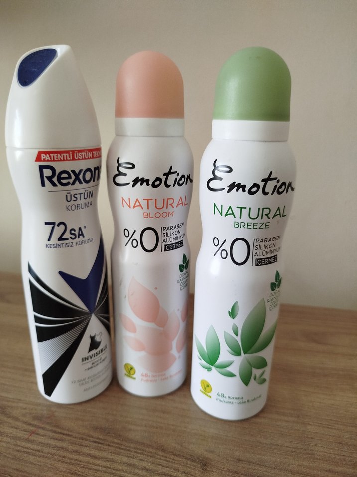 Uzun süre koruma sağlayan Rexona ve %0 paraben, silikon, alüminyum içermeyen Emotion Natural çiçek ve esinti kokulu kadın deodorant seti.