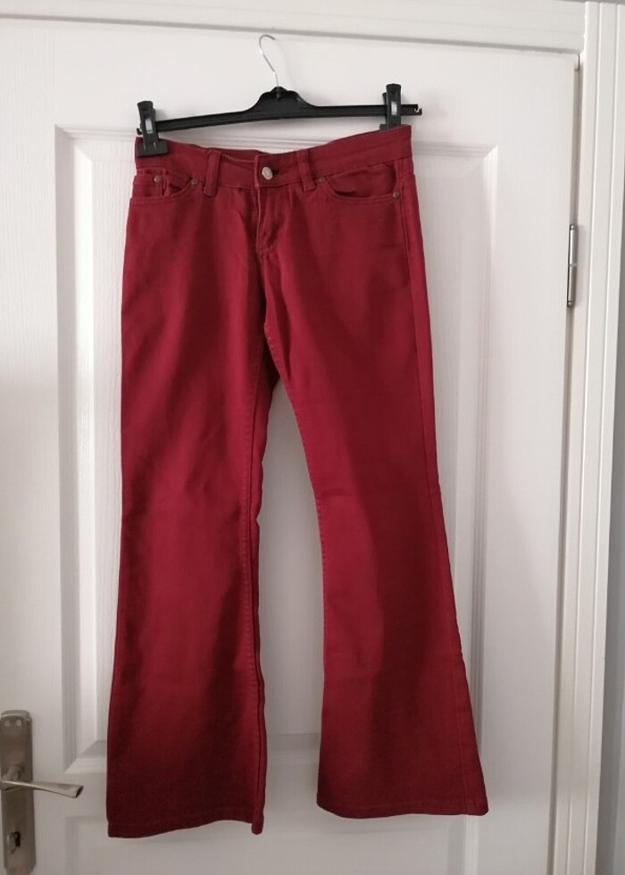 27 beden bordo pantolon.. Birkaç kez kullanılmıştır.. Hiçbir kusuru yoktur.. Temiz üründür.