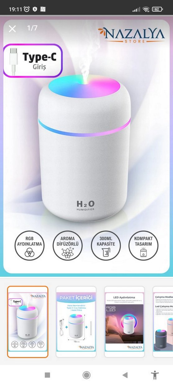 300ml kapasiteli, RGB aydınlatmalı ve aroma difüzörlü kompakt beyaz H2O nemlendirici. ️