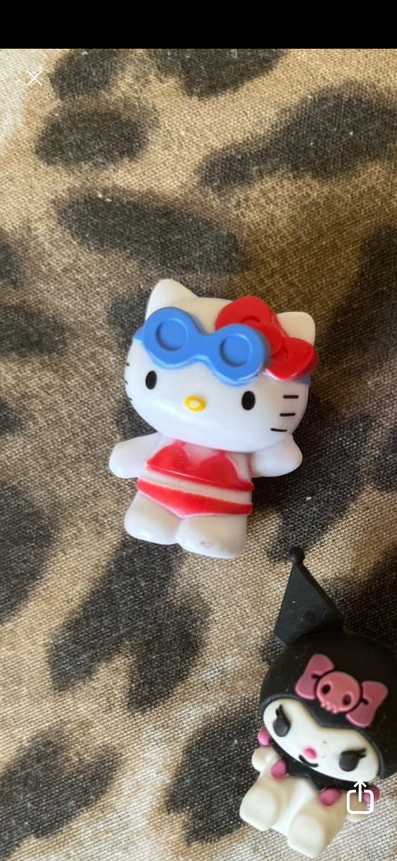 Mavi gözlük ve kırmızı kıyafetle renkli Hello Kitty aksiyon figürü. Küçük ve detaylı tasarımıyla koleksiyon için uygundur.