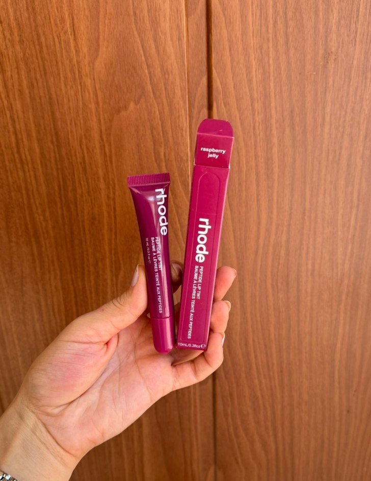 Rhode marka, pastel bordo renkli Raspberry Jelly isimli dudak parlatıcısı, pürüzsüz ve parlak bir görünüm sağlar.