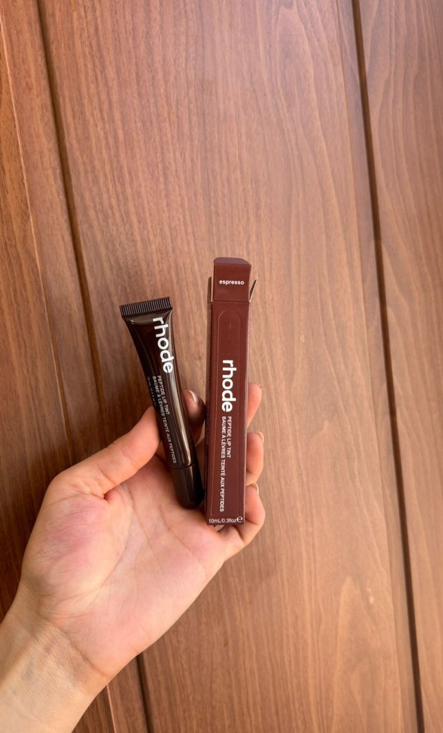 Rhode markasına ait Espresso isimli koyu bej renkli ruj parlatıcısı, parlak bitiş sağlar. Şık tüp ve kutuda sunulur.