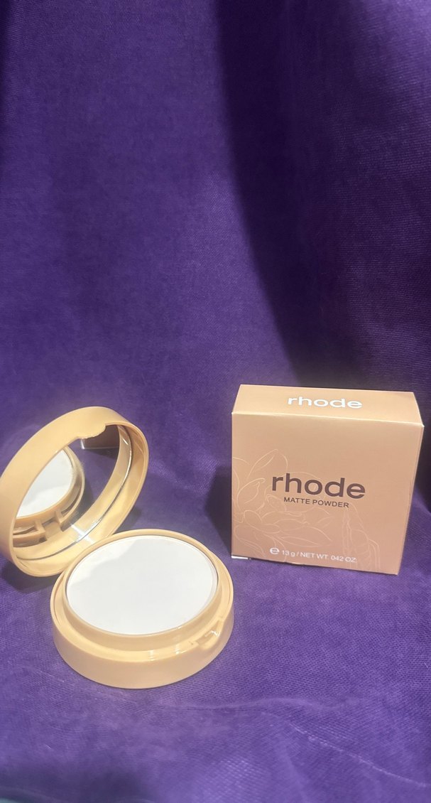 Rhode mat pudra, açık bej renkli, kompakt kutulu ve aynalı. Cilde pürüzsüz, mat bir görünüm sağlar.