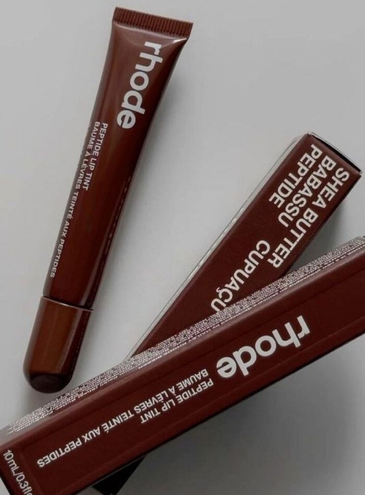 rhode skin tint espresso içeren koyu kahverengi Rhode ruj, dudaklarda yumuşak ve canlı bir görünüm sağlar.