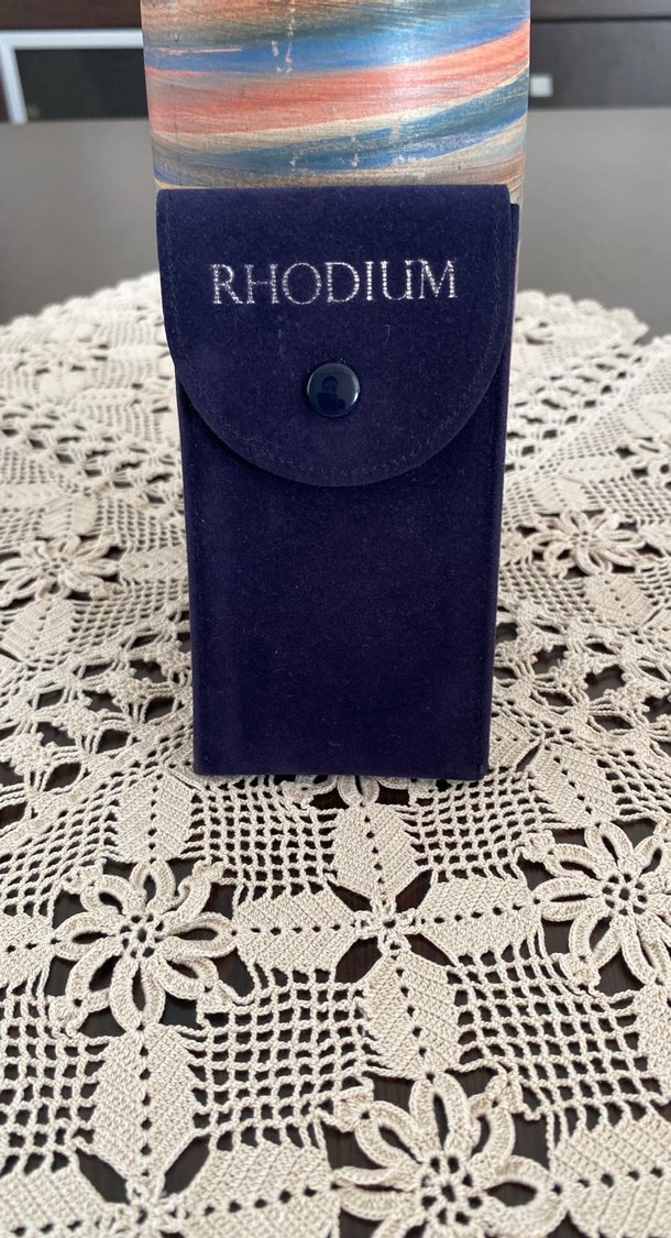 Rolex satışı yapan Rhodium saat mağazası ürünü kol saati kılıfı ya da kesesi. Saatleri korumak için seyahatlerde vs kullanılır. Rengi laciverttir. Kumaşı süet gibidir.