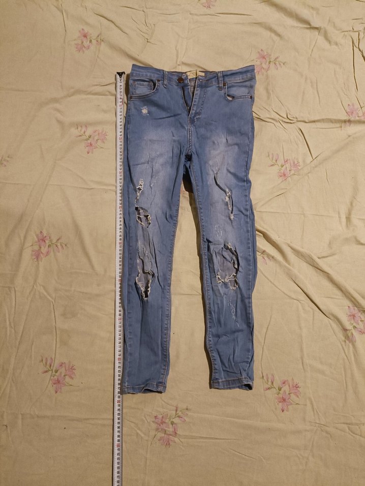 midi uzunlukta mavi kot pantolon. Yırtık detaylı. Günlük kullanım için uygun, rahat ve sokak stili görünüme sahip. Sorunsuz ölçüleri fotolarda.
