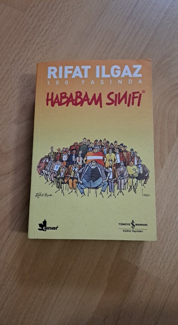 Rıfat Ilgaz'ın 100. yaşını kutlayan 'Hababam Sınıfı' kitabı, renkli kapak çizimiyle dikkat çekiyor.