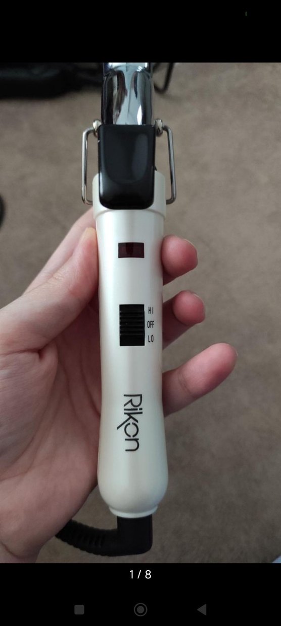 Riken markalı beyaz saç şekillendirici, ayarlanabilir ısı seçenekleri (Hi, Off, Lo) ile pratik kullanım sağlar. ✨