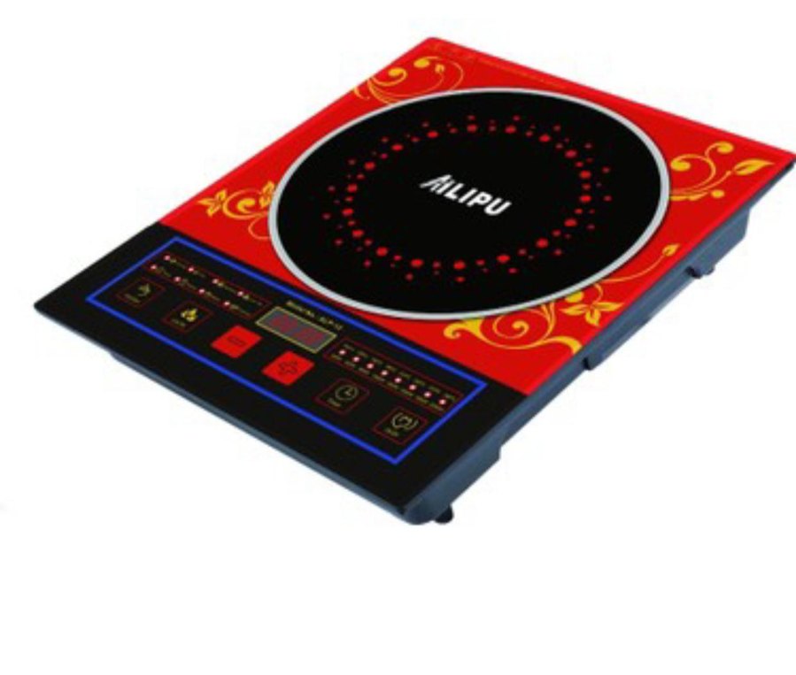 RILIPU markalı, dijital kontrollü, kırmızı renkli elektrikli ocak. Ayarlanabilir sıcaklık ve düz ısıtma yüzeyi sunar.