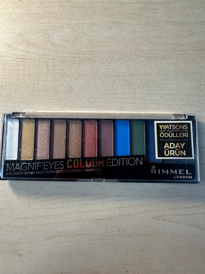 Rimmel Magnif'Eyes far paleti, canlı koyu tonlarda çoklu renkler sunar. Kompakt tasarımıyla çeşitli göz makyajları için uygundur. ️