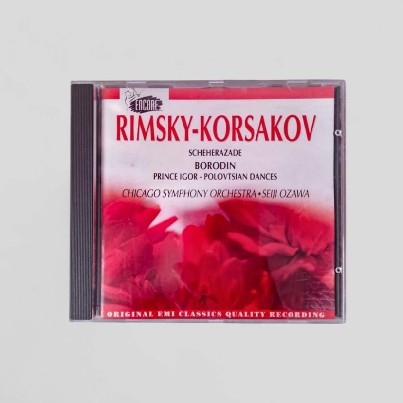 Chicago Senfoni Orkestrası ve Seiji Ozawa yönetiminde, Rimsky-Korsakov ve Borodin'in eserleri, Scheherazade ve Prince Igor dahil. Temiz ve çalışır.
