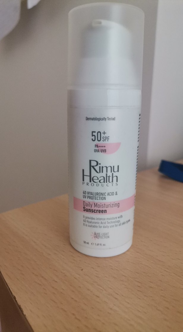 Rimy Health güneş koruyucu, SPF 50+ ile UVA ve UVB ışınlarına karşı koruma sağlar. Hyaluronik asit ile cildi yoğun nemlendirir. Çok az kullanıldı.