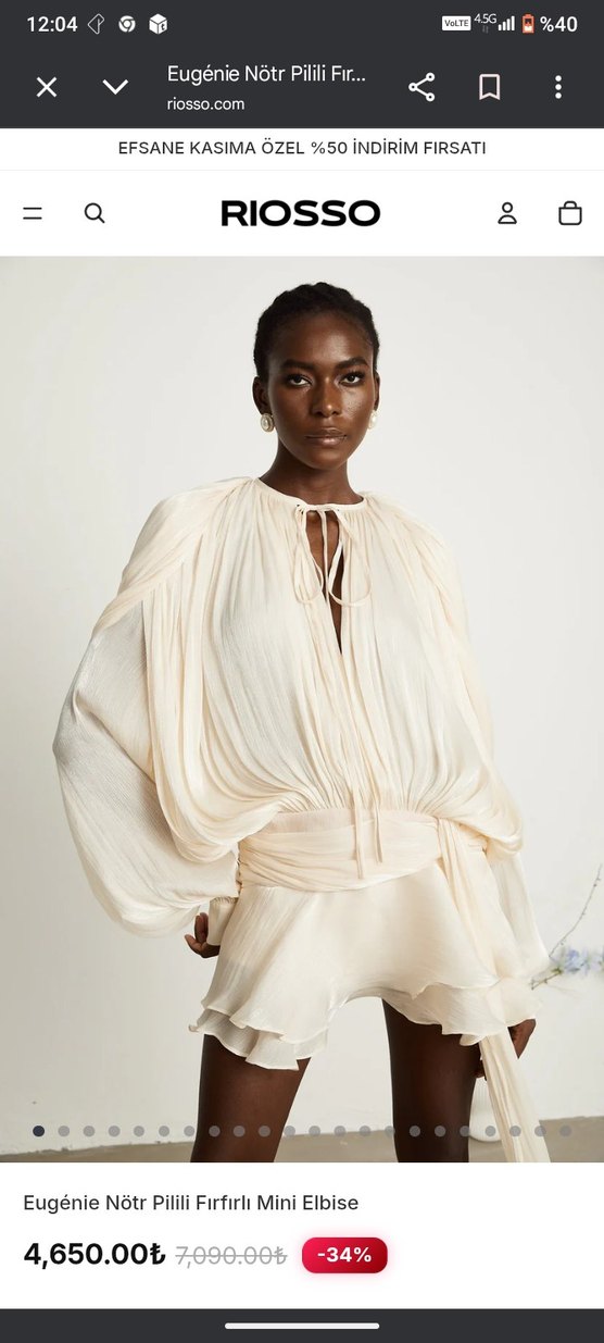 Krem somon yansımalı mini elbise, uzun kollu ve bol kesimdir. V yaka ve bohem tarzıyla gece ve özel davet kullanımina uygundur. .Riosso online sitesinden alım yapıldı . S bedendir. Orijinaldir . Oldukça mini !!