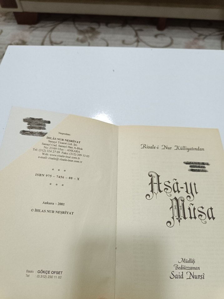 Said Nursi'nin Risale-i Nur Külliyatı'ndan Asa-yı Musa kitabı, ihlas Nur Neşriyat tarafından yayımlandı. resim lerde görüldüğü gibi dir.