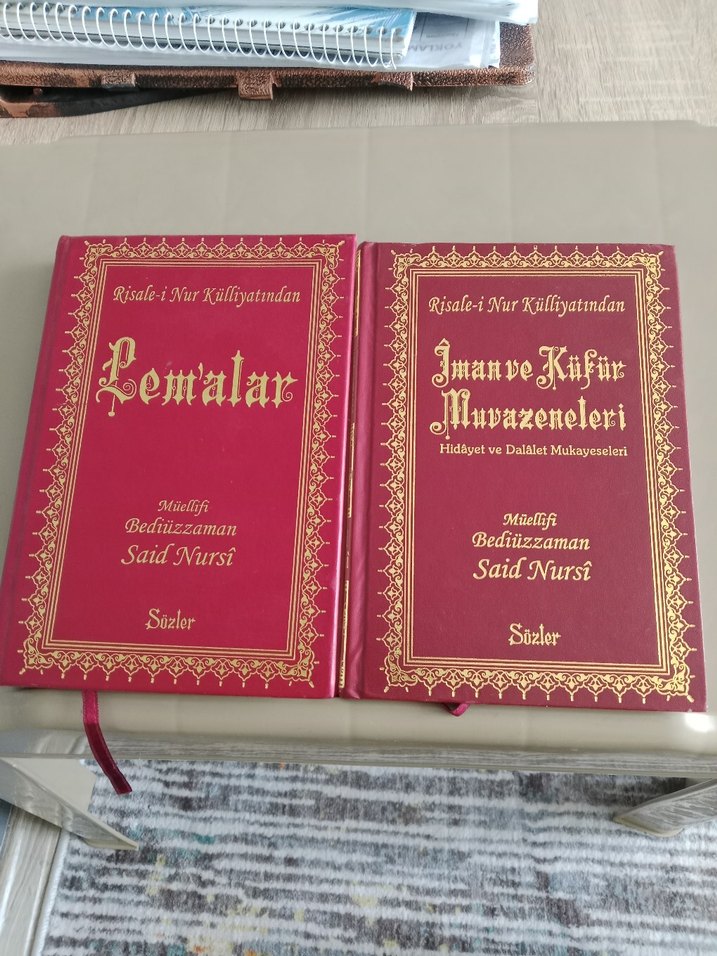 Said Nursi'nin Risale-i Nur külliyatından 'Lem'alar' ve 'Jman ve Küfür Muvazeneleri' adlı iki dini kitap seti. hiç kullanılmamış tek bir çizik dahi yok tertemiz..