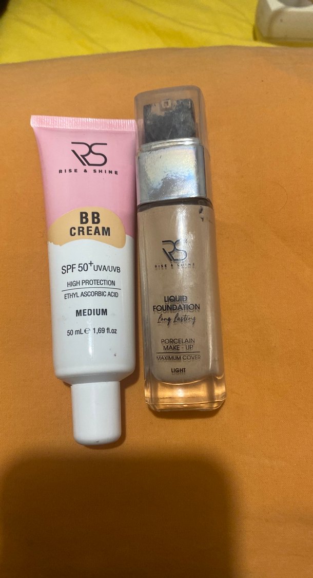 Rise & Shine orta tonlu BB krem, SPF 50 yüksek koruma ve etil askorbik asit içeren sıvı formülü ile parlaklığı kontrol eder. Sagdaki fondoten actim ama kullanmadim soldakinide hic acmadim