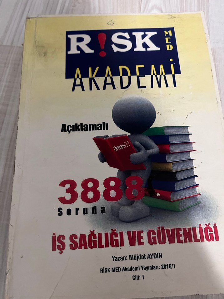 3888 açıklamalı soruyla İş Sağlığı ve Güvenliği konularını içeren, Müjdat Aydın tarafından yazılmış Risk Med Akademi yayını, cilt 1.