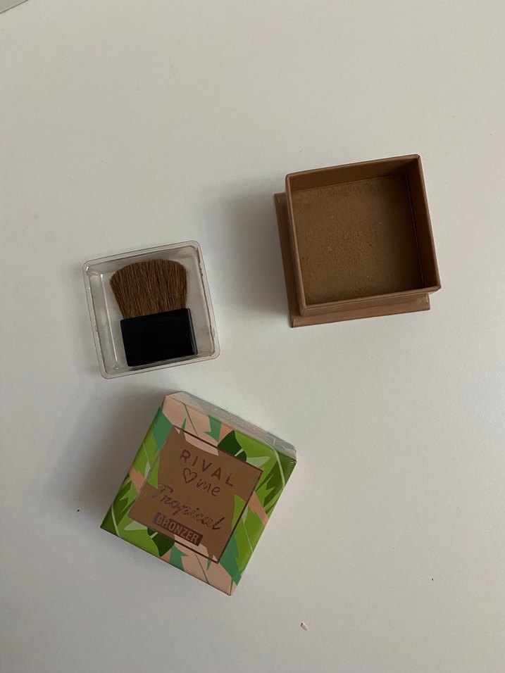 Küçük fırçalı koyu bej allık, kutusunda RIVA markası yer alıyor.