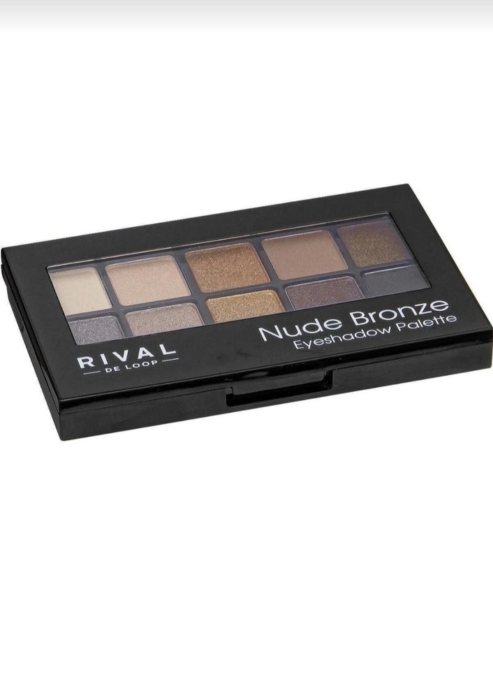Rival Nude Bronze göz farı paleti, mat ve parlak bitişli bej ve bronz tonlardan oluşur, çeşitli makyajlar için uygundur.