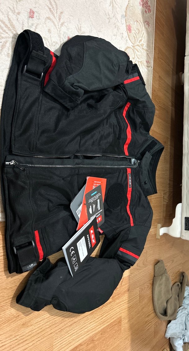 LS2 Riva Man motosiklet montu – 40 beden (M). Hiç kullanılmamış, sıfır ürün. CE onaylı korumalar ve nefes alabilir kumaş ile konforlu kullanım. Orijinal LS2 etiketi mevcut.