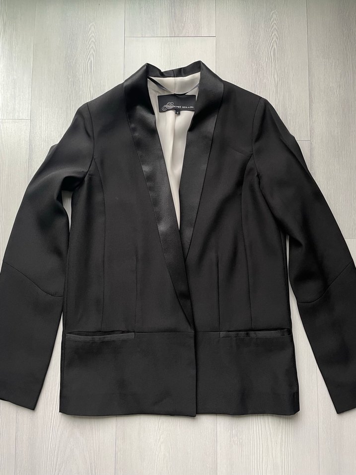 River Island Blazer Ceket, Orjinaldir, Az kullanılmıştır, Herhangi bir deformasyon yoktur, Yakası saten detaylıdır, Ceplidir, Önü kapamalı değildir, En:43 cm, Boy:65 cm, S beden
